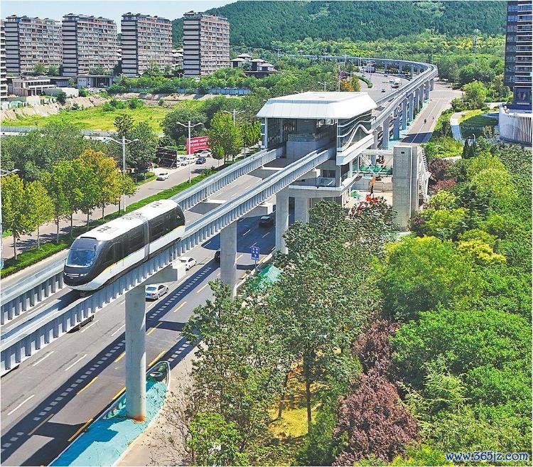 8月7日上昼10时许,一辆济南高新东区云巴列车从彭家庄站慢慢驶出,朝着土河西路站前进。