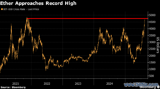 比特币和以太坊均靠拢历史高点,投资者纷繁涌入这两大加密货币九游体育app娱乐,近期需求海浪更倾向于后者。
